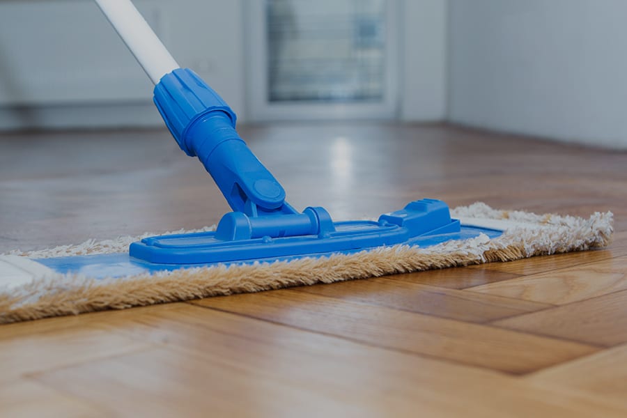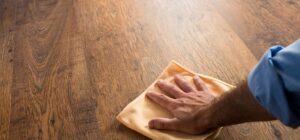 Pulizia del parquet con strofinaccio umido ben strizzato